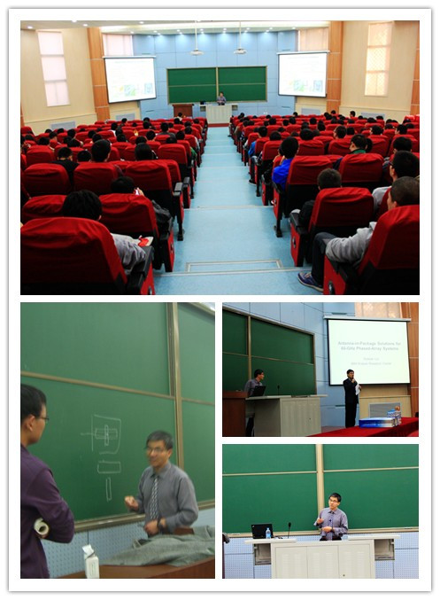 23日下午,刘兑现教授在北校区教学楼J112教室做了题为“Antenna-in-Package Solutions for 60GHz Phased-Array Systems”的学术报告,刘兑现教授在报告中详细介绍了60GHz毫米波在无线传输中的应用、优势和目前国际上的研究状况,讲授了其天线各模块的设计、材料、结构、工艺等软硬件关键技术,并对该领域技术未来的发展方向做了展望。304永利集团唯一200余名师生参加了本次报告会,并在报告会上与刘兑现教授进行了学术交流。