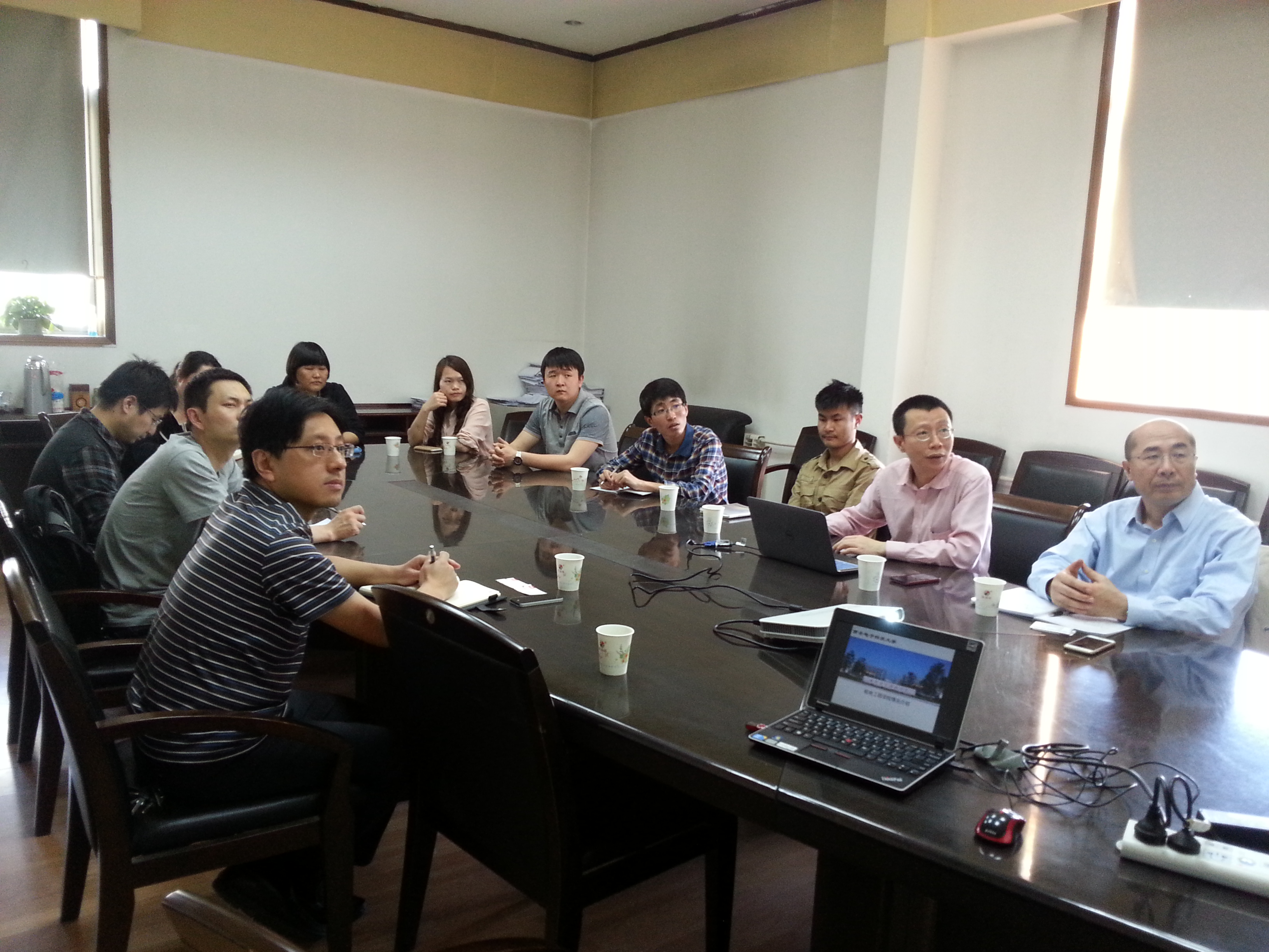 会上,与会教师代表也向杨福军总经理、方华经理介绍了自己的研究方向和取得的成果。双方还就课题依托企业平台产业化孵化、公司课题组承接企业开发项目和联合开发概念样机进行了深入地探讨。