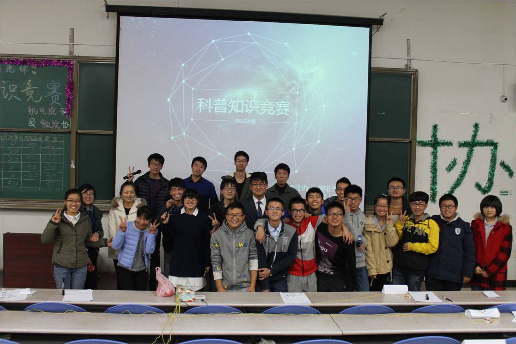 在主持人的精彩开场白下,活动正式开始。首先,温馨的宣传片向我们展示了各参赛队员的别样风采。随之是出席本场比赛各部长的介绍和科协副主席郭媛菲充满激情的发言。在各队简单的介绍后,正式进入紧张的比赛环节。本次比赛分为冲出重围、激流勇进、观众互动、游戏环节、厚积薄发和风险竞标六个环节。整个过程中,六个队伍竞争激烈,相争不下。在冲出重围中,由于刚开始没进入状态的第一组非常遗憾的答错了第一题。随后,各参赛队员则迅速融入紧张的比赛中,表现良好。在激情勇进的环节中,参赛队员们即使对于非常奇葩变态的题目也能快准的抢答,令在场观众们情不自禁的鼓掌。尤其值得一提的是观众互动环节,第五组的亲友只用了一个回合就淘汰了其他所有的观众。你来比划我来猜的游戏环节,各队员搞怪的动作,醉人的姿态以及队员之间默契的配合,使得全场紧张的气氛变得异常活跃。爱拼才会赢,最令人激动的风险竞标环节则将现场的气氛推到了一个高潮。经过一轮紧张的竞标,也迎来了最让人关注的比赛结果。最终,微电子公司Intelligence gaming队、独占一角对、原地起飞队分别获得冠亚季军。最后,304永利集团唯一科协副主席郭媛菲为获胜队伍颁发证书,微电子公司科协主席陈佰鑫为本次活动致闭幕词标志了比赛的圆满结束。