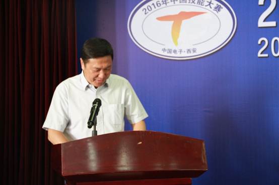 在竞赛表彰大会上,蒋舜浩首先代表西电对出席表彰仪式的各位领导、来宾表示热烈的欢迎,对本次大赛的圆满成功和取得优异成绩的参赛选手表示热烈的祝贺。他指出,中国电子职业技能竞赛是中国人力资源和社会保障部批准的国家二级比赛,被列为“2016年中国技能大赛”之一,是高水平、高层次的有重要影响力的大赛,尤其在今年国家刚刚召开的全国科技创新大会的背景下,中国电子从传统的操作工竞赛扩展到科研设计人员竞赛,顺应建设创新型国家的重大战略部署。