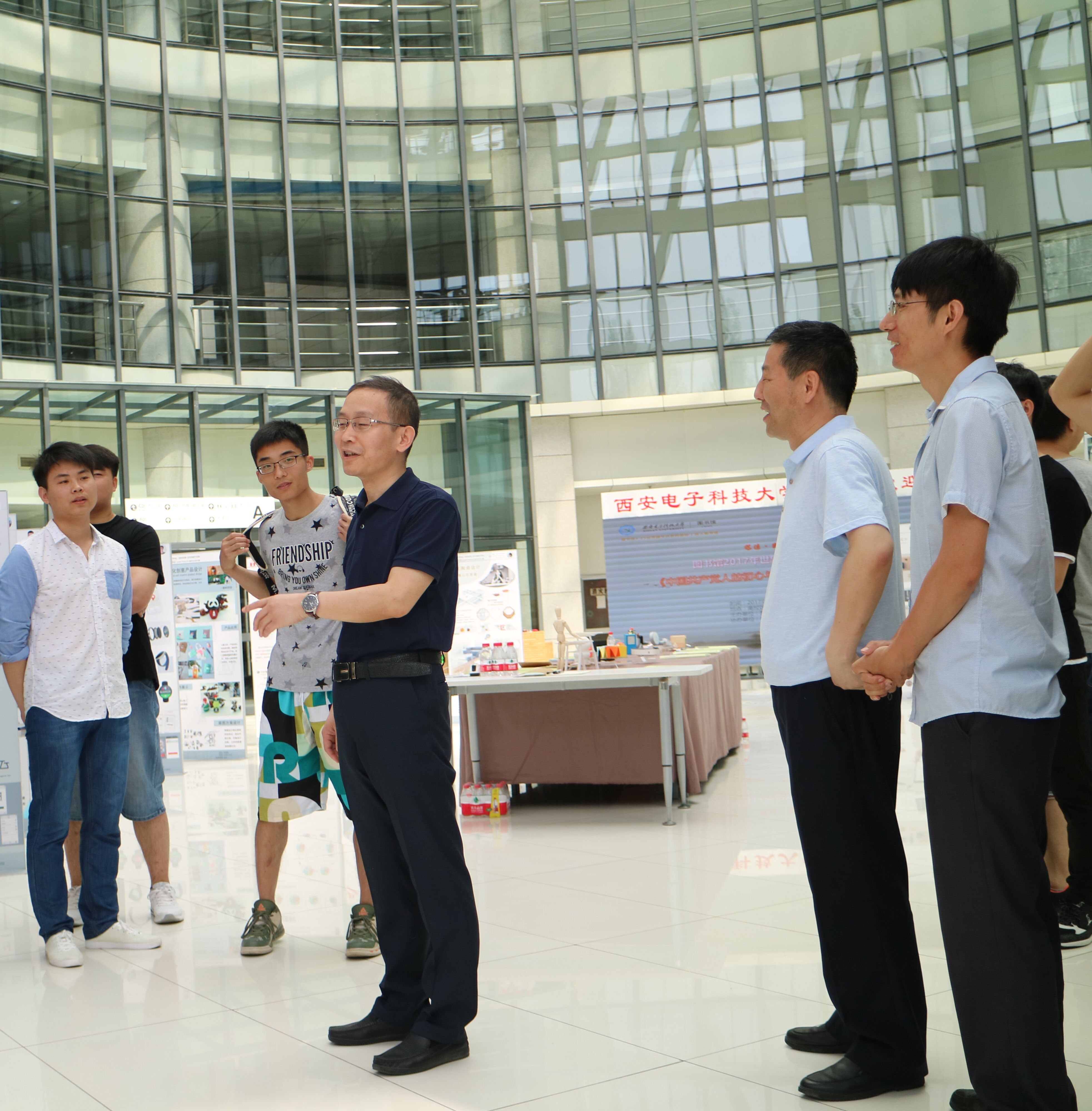 2017年6月1日上午,本次毕业设计展还举行了简短的开幕式,304永利集团唯一李团结副经理莅临现场指导,并发表了热情洋溢的讲话,对员工的设计创意高度赞赏,对展览筹备工作和展出效果表示肯定,表示公司将进一步支持工业设计系开展教学改革创新工作,提高专业建设质量。