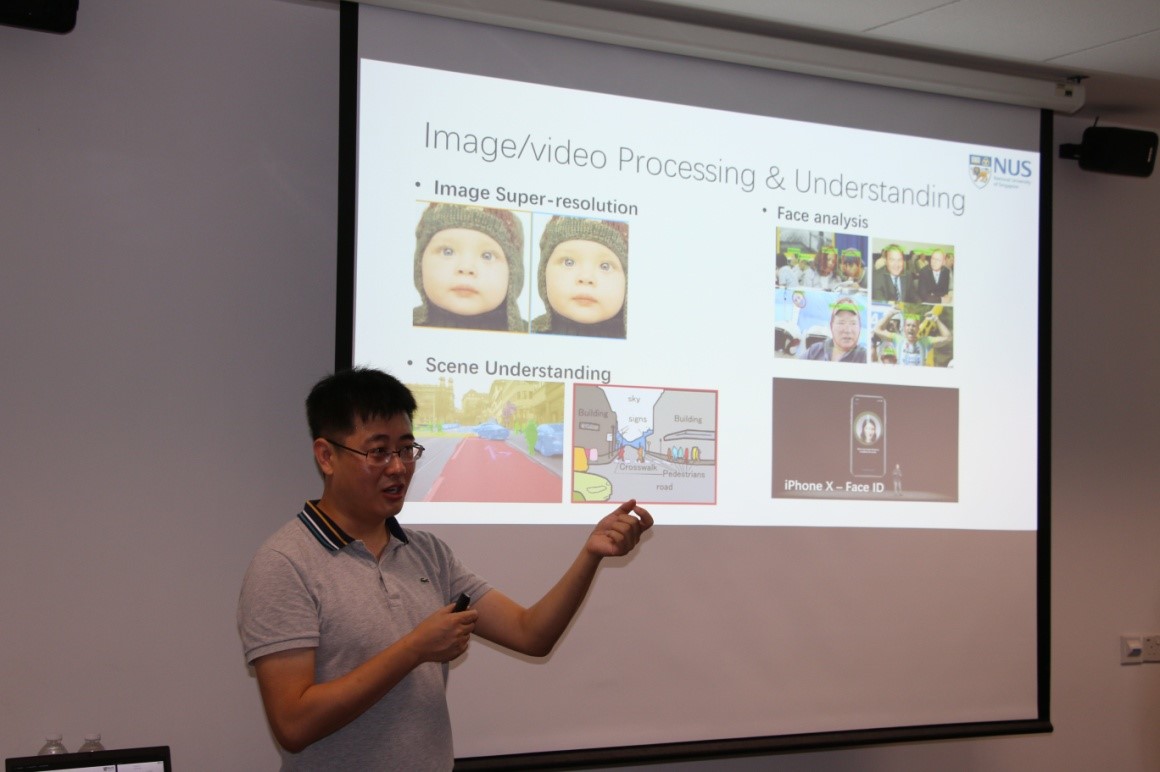 1月23日上午,在新加坡国立大学工程公司,新加坡国立大学电子与计算机工程系、机器学习与视觉实验室负责人冯佳时(Feng Jiashi)教授向同学们做了“Deep Learning for Visual Understanding”的报告,讲解了深度学习及计算机视觉的原理和最新研究进展,详细讲解了两者的工作原理和应用现状,重点讲解了深度学习技术在人脸识别、深度图像超分辨率(Deep Image Super-Resolution)、图像去雨滴、图像去雾、图像去雾霾、超限人脸识别、人脸去遮挡与人脸年龄识别等方面的研究成果,并对其研究成果进行了演示,这些神奇的成果深深地吸引了同学们的好奇心,启迪了大家对科学研究的兴趣。