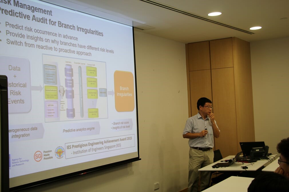 1月22日下午,穿梭在新加坡这座花园城市,行过葱葱绿色,同学们来到了新加坡科技研究局(Agency for Science, Technology and Research, A*STAR),新加坡科技研究局资讯通信研究院高级科学家Dong Minghui博士先向同学们介绍了A*STAR的各个部门,包括BMRC、JCO、SERC和ETPL以及SERC等的研究方向。董博士做了“Speech Processing Platform:Acoustic Model, Lecxical,Machine Translation, Dialogue Technology, Meeting Recognition and Summarization”的报告,用风趣的语言,深入浅出地介绍了智能语音交互技术、机器翻译技术、自动对话技术和自动会议语音识别与摘要技术及其发展现状与实际应用。董博士团队的孙研究员用团队研发的声纹识别软件,向同学们进行语言技术的演示;以Employee Analytics为例,演示了团队大数据分析的成果,同学们也得对机器学习和深度学习有了初步的概念,产生了极大的兴趣。“吾尝终日而思矣,不如须臾之所学也”,大概就是同学们真实的内心写照了。