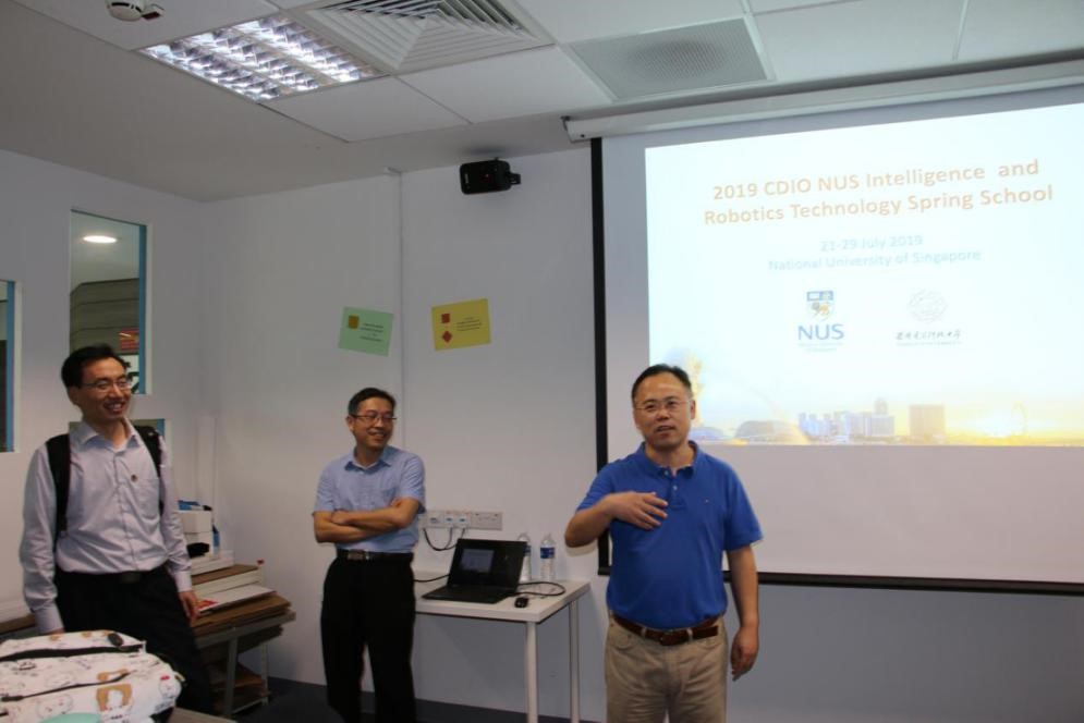 开营仪式由Zhang Rongli博士主持。张博士从活动安排、新加坡国情概况、教育体制和NUS介绍等方面向同学们做了讲解,拉开了智能机器人技术训练营的序幕,让同学对丰富的讲座和体验活动充满了期待。