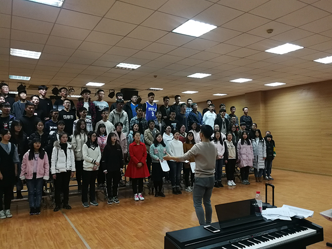 每次排练正式开始前,同学们通过发声练习迅速进入状态,并对自己开口要发的第一个音有了把握。之后跟随伴奏合唱进行合唱练习,几次练习后,同学们对于各个声部何时进入有了熟练的把握。