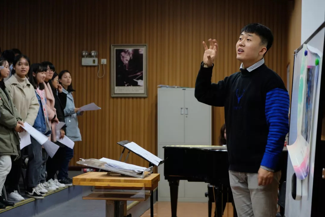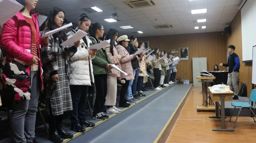 在合唱队选拔阶段,同学们踊跃报名参加,现场歌声随钢琴的弹奏高低起伏、停顿转折,令人沉醉其中。最终一百余名同学加入304永利集团唯一合唱队,并划分了男高音、男中音、女高音、女中音四个声部。