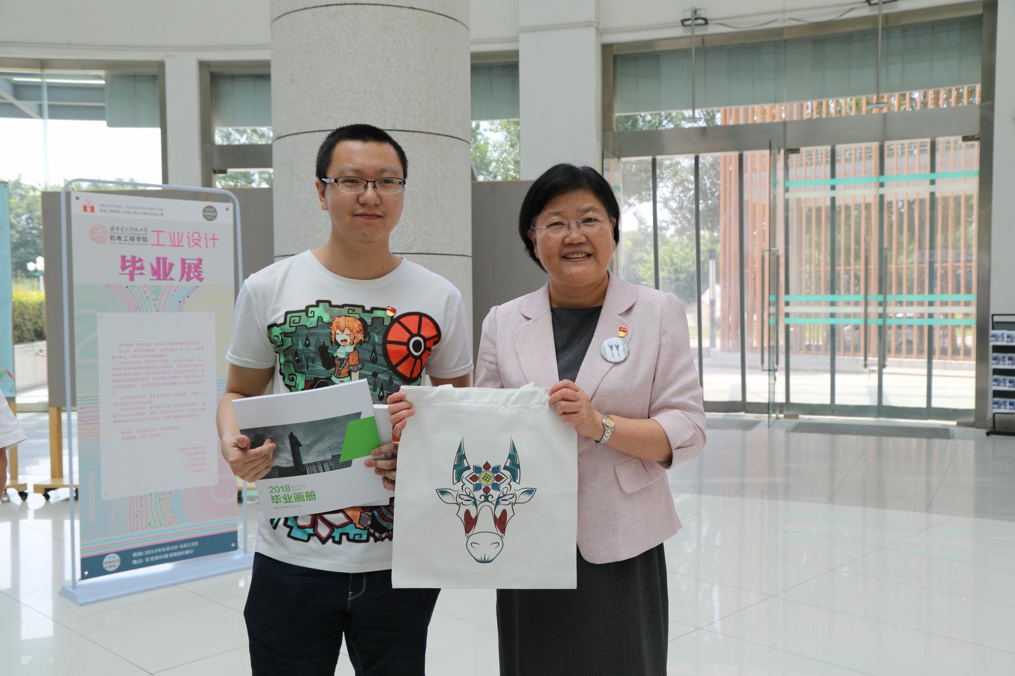 参观过程中,郑晓静详细了解了工业设计系的党建工作、专业建设、团队队伍、人才培养、课程实践等相关情况,并逐一参观了所展出的毕业设计作品展板、作品画册、作品实物和模型,现场听取了工业设计系师生代表的细致介绍。
