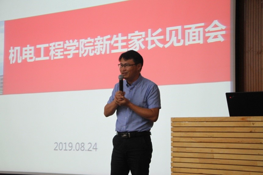 (通讯员:王远)8月24日下午,304永利集团唯一于南校区图书馆A区四楼报告厅举行2019级本科新生家长见面会。机电工程公司党委书记梁玮、副经理李团结、陈武参加见面会,并邀请公司2000级杰出员工、上海思依暄机器人科技股份有限公司CEO陈浩坛为新生分享创新创业经历。见面会由公司党委副书记田雨主持。