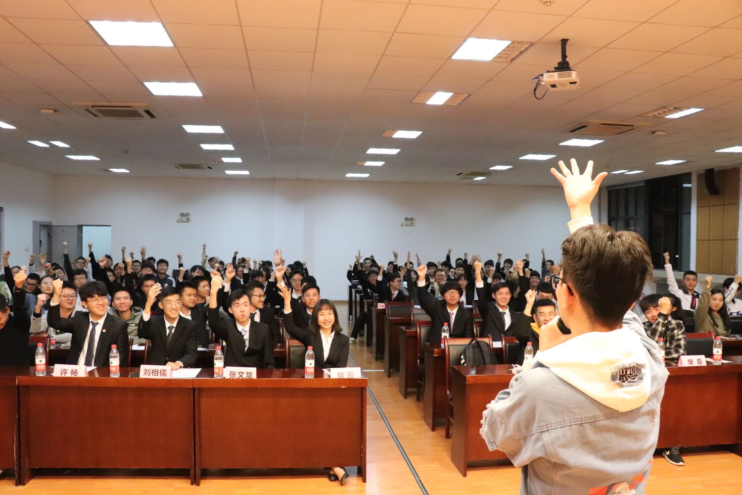 随着暖场小视频的播放,换届大会拉开了帷幕。在主持人的介绍下,大会的气氛逐渐变得活跃起来。上一任老部长们在视频中的寄语,鼓励着团委全体人员不忘初心,肩负使命,奋勇向前。温馨的寄语过后便是过去一年的总结视频,这让团委新成员们明白了团委这个组织肩负的责任与义务,也让他们感受到了自豪与光荣。