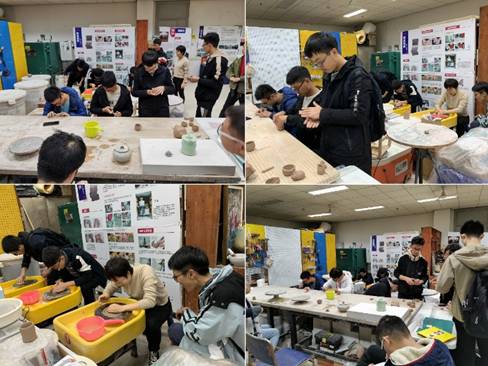 2019年11月21日下午7-8节,杨西惠、张爱梅老师组织大一新生到G102实验室进行参观体验活动。G102是陶瓷材料研究与产品模型实验室,实验室负责人张英老师和她的研究生们接待了同学们。张老师给同学们讲述了陶瓷产品设计的过程,陶瓷制作中的几种方法,有拉坯成型,捏塑成型等。演示各种工艺和烧制流程,并介绍了实验室的各种仪器设备,结合后面大二将要开设的艺术基础课程及多门专业课程,张老师还给同学们展示了立体书的形态构成,引导大家进行抽象思维,将实物与课程嫁接起来,同学们兴致颇高。