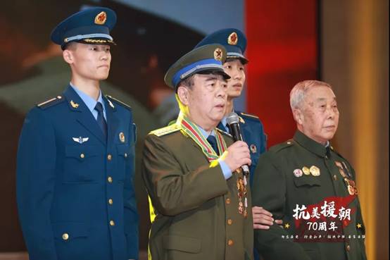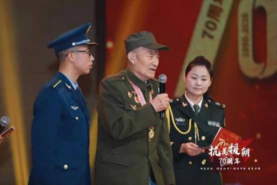 大会还邀请了叶文盛、刘绍基、王景河等抗美援朝参战老英雄。老英雄们在大会上,追忆了70年前这场伟大的战争,赞美了中国人民志愿军伟大的爱国主义精神和革命英雄主义精神。最让同学们感动的,是老英雄刘绍基的事迹。老英雄在抗美援朝中击落一架美帝国主义敌机,被空军荣记一等功。谈及光荣往事,今年已经90岁高龄的老英雄却说,“我觉着自己做的不够好,以后依然要继续努力!”看到老英雄虽在暮年壮心不已,依旧不忘初心、情系祖国,同学们无不动容,现场掌声雷动。