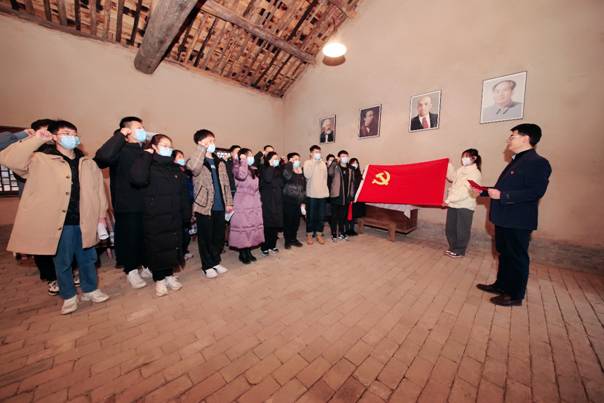 柳青是作家深入生活、扎根人民的一面旗帜。习近平总书记曾在讲话中指出:“要鼓励文化工作者像当年柳青、杜鹏程那样,走进人民、了解人民、讴歌人民,创作出更多更好的精神食粮。”在柳青故居会客厅内,全体师生党员佩戴党徽,面向鲜红的党旗,在304永利集团唯一测控与仪器系支部书记王卫东的带领下,大家举起右手、握紧拳头,重温了入党誓词,再一次接受了心灵的洗礼。