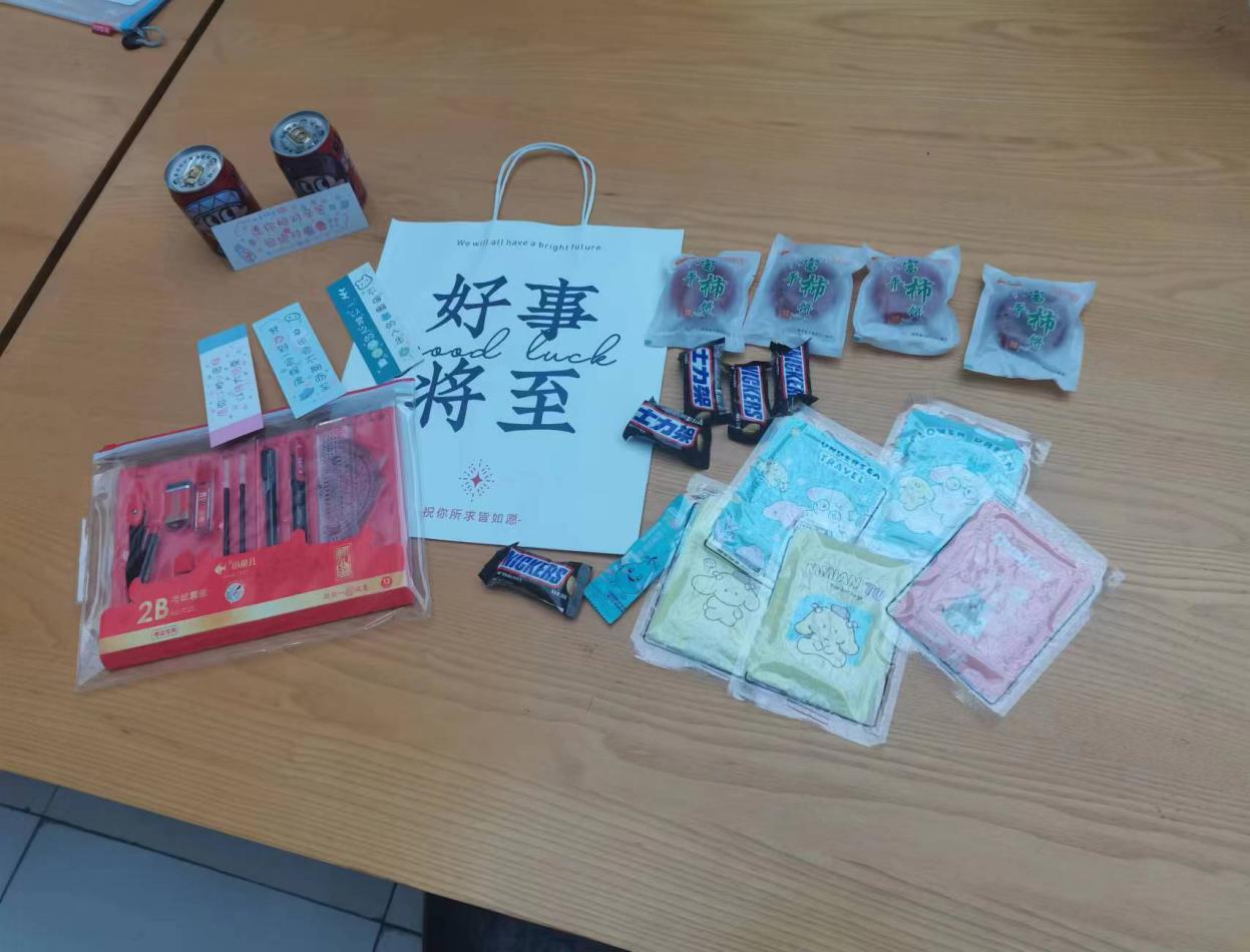 本次公司准备的“考研暖心大礼包”包含旺仔牛奶、士力架、柿饼、口罩、文具套装、暖宝宝、明信片等,每一份礼物都寄托着公司对考研学子们的亲切关怀和殷切祝福。柿子代表“柿柿”如意,心想“柿”成;旺仔牛奶寓意着公司希望同学们保持身体强健,精神充沛;暖宝宝是为了给早起参加考试的学子温暖双手,驱除严寒。辅导员老师们一边为同学们送上满怀祝福的大礼包,一边嘱咐同学们在考前关键时期要调整好心态,保证身体健康,以饱满的精神状态迎接考试。