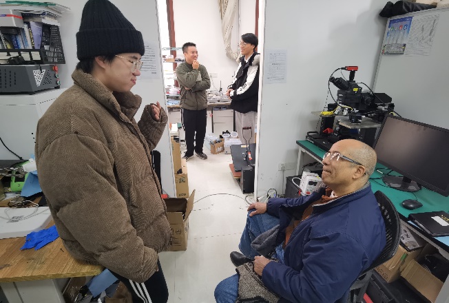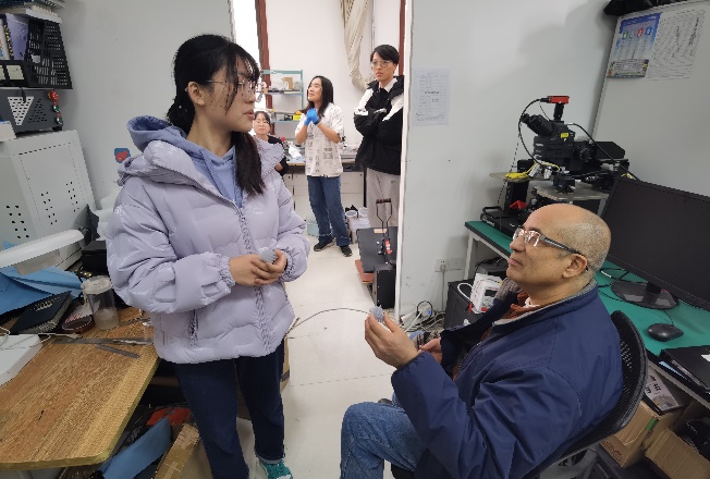 来访期间,Basaran教授参观了公司“微纳机电系统研究中心”实验室,与课题组研究生展开了亲切友好的讨论。Basaran教授详细了解了每位员工的研究方向,为同学们耐心解答了科研上遇到的困惑,同时鼓励大家能够继续深造,在电子封装领域开展更加深入的研究工作。