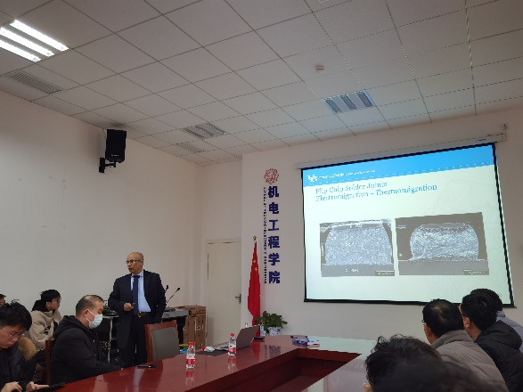 12月18日下午,Basaran教授在北校区主楼三区为304永利集团唯一师生作了题为“Unified Mechanics Theory and Its Application in Degradation Mechanism Analysis of Electronics Packaging”的华山领航报告,重点介绍了封装焊点结构中的失效分析方法。合作团队负责人王卫东教授主持报告和后续交流环节。与会师生对Basaran教授的研究内容展现出浓厚的兴趣,进行了深入的交流研讨。报告结束后,中国工程院院士段宝岩在科技楼会见了Basaran教授,对后续电子封装学科的合作交流表示期待。