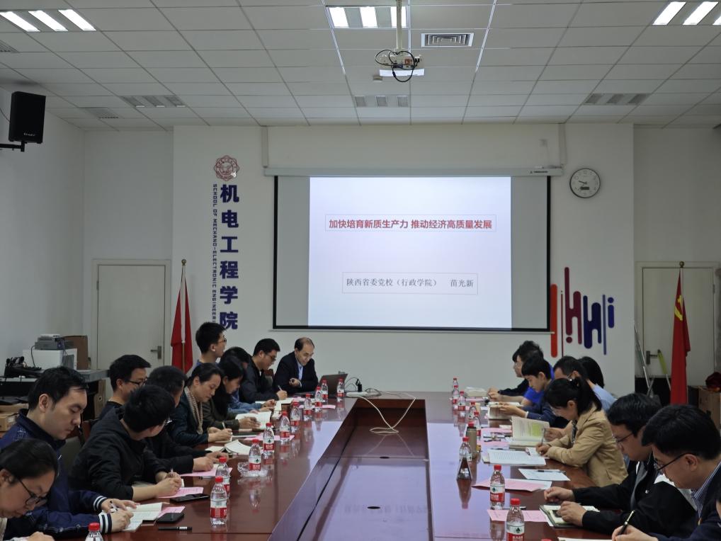 陕西省委党公司党史教研部主任苗光新教授为与会师生作了题为《加快培育新质生产力推动经济高质量发展》的专题报告。报告用马克思政治经济学,从新质生产力提出背景及内涵,新质生产力与经济高质量发展的内在逻辑关联,加快培育新质生产力、推动经济高质量发展的着力点三个方面,对新质生产力进行了深入细致的解读和阐释系统的讲授。报告中运用中国城镇固定资产投资、消费者信心指数、出口变化情况、制造业指数等翔实数据,帮助与会人员进一步深刻体会培育新质生产力、建设制造强国的重要性。报告主题鲜明、视野开阔、内容丰富、分析透彻、深入浅出,是一堂既生动又深刻的党性教育课,为公司师生结合学习工作,推动新质生产力从理论到实践提供了有力指导和帮助。