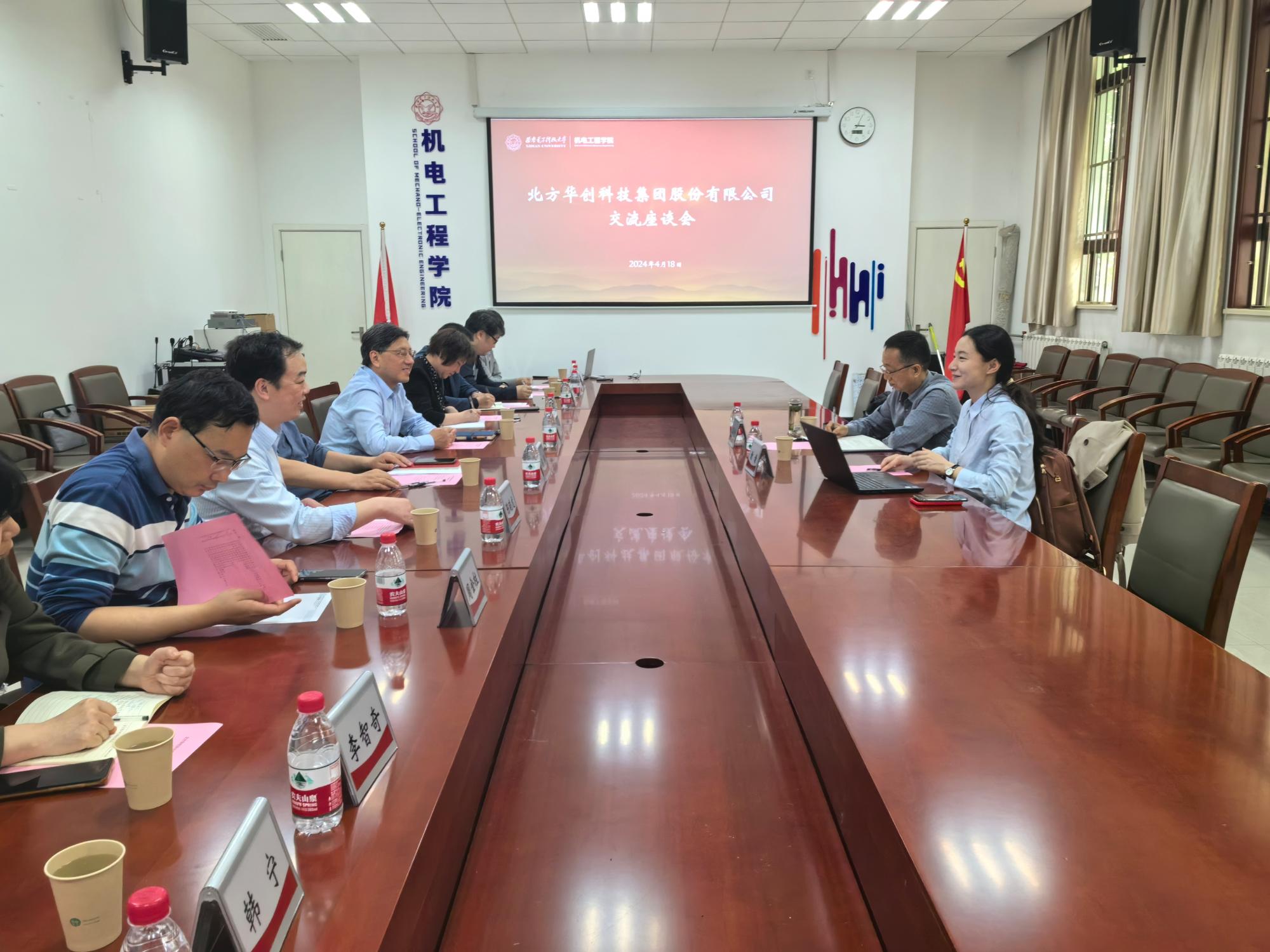 (通讯员 王飞)4月18日下午,北方华创科技集团股份有限公司人力资源管理中心总监谢谦、西安子公司副总经理王跃利来公司调研交流,机电工程公司党委书记梁玮、执行经理黄进、副经理陈晓龙、相关各系所主任及教师出席。座谈会在北校区主楼三区145北会议室举行,会议由陈晓龙主持。