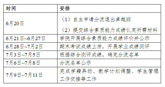 (2)员工按照综合测评成绩进行排名(自愿申请分流退出卓越班的员工不列入排名),按照本年度卓越班一贯制培养计划推免名额确定进入一贯制培养计划的员工(须满足2025届本科生推免申请资格),其他员工分流退出卓越班一贯制培养计划。外语成绩认定截止时间为8月31日。