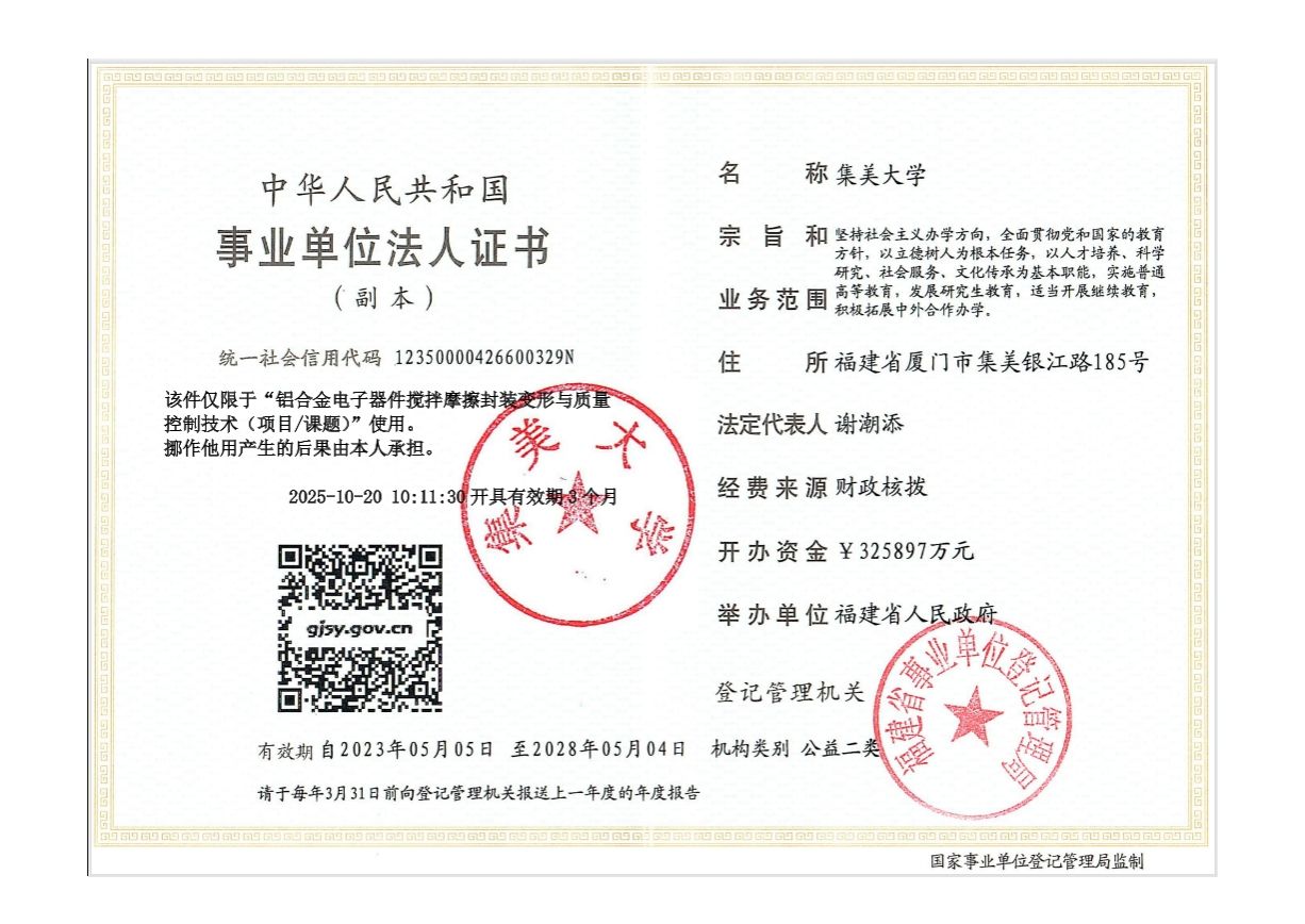 按照《304永利集团科研协作项目管理办法(试行)》文件规定,为加强公司科研协作项目的管理,确保高性能集成制造实验室电子装备特种制造技术研究的顺利进行。集美大学与项目负责人李楠将开展科研合作,现将合作相关事项公示如下: