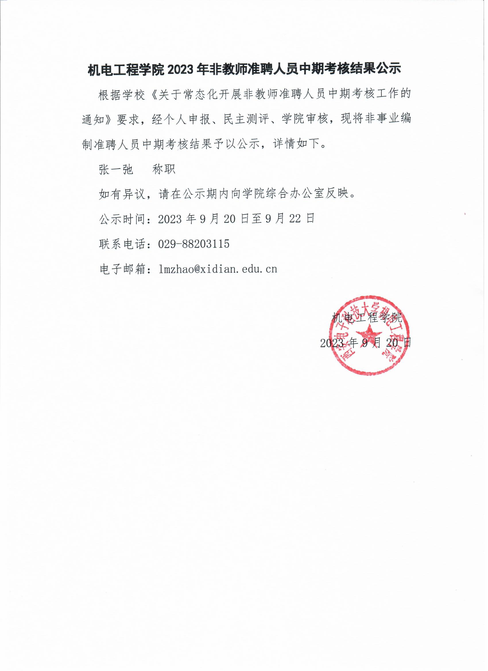 304永利集团唯一2023年非教师准聘人员中期考核结果公示(公示期已过)
