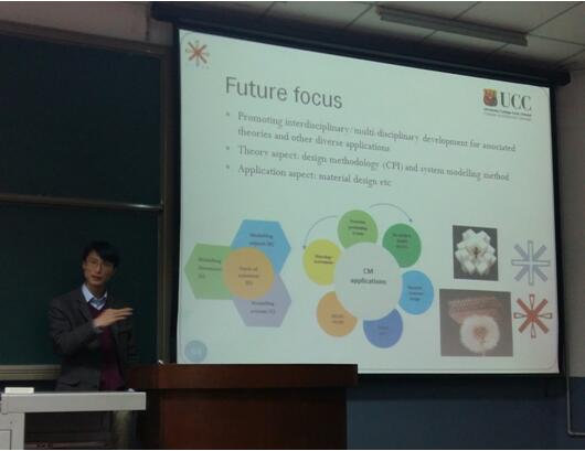 12月22日下午,郝广波在北校区阶梯教室201作了题为“New Stiffness and Structure Characteristics of Compliant Mechanisms(柔顺机构刚度与结构的新特性)”的精彩报告。郝广波首先简要介绍了爱尔兰的历史和文化,以及科克大学的概况;在介绍柔顺机构的优势及在应用领域柔顺机构与传统机构的互补性的基础上,郝广波深入阐述了他的团队提出的基于旋量理论的位置空间柔顺机构设计方法,并展示了用该方法设计的新机构;之后,郝广波对柔顺机构未来的发展进行了展望;最后与现场师生进行了互动交流。