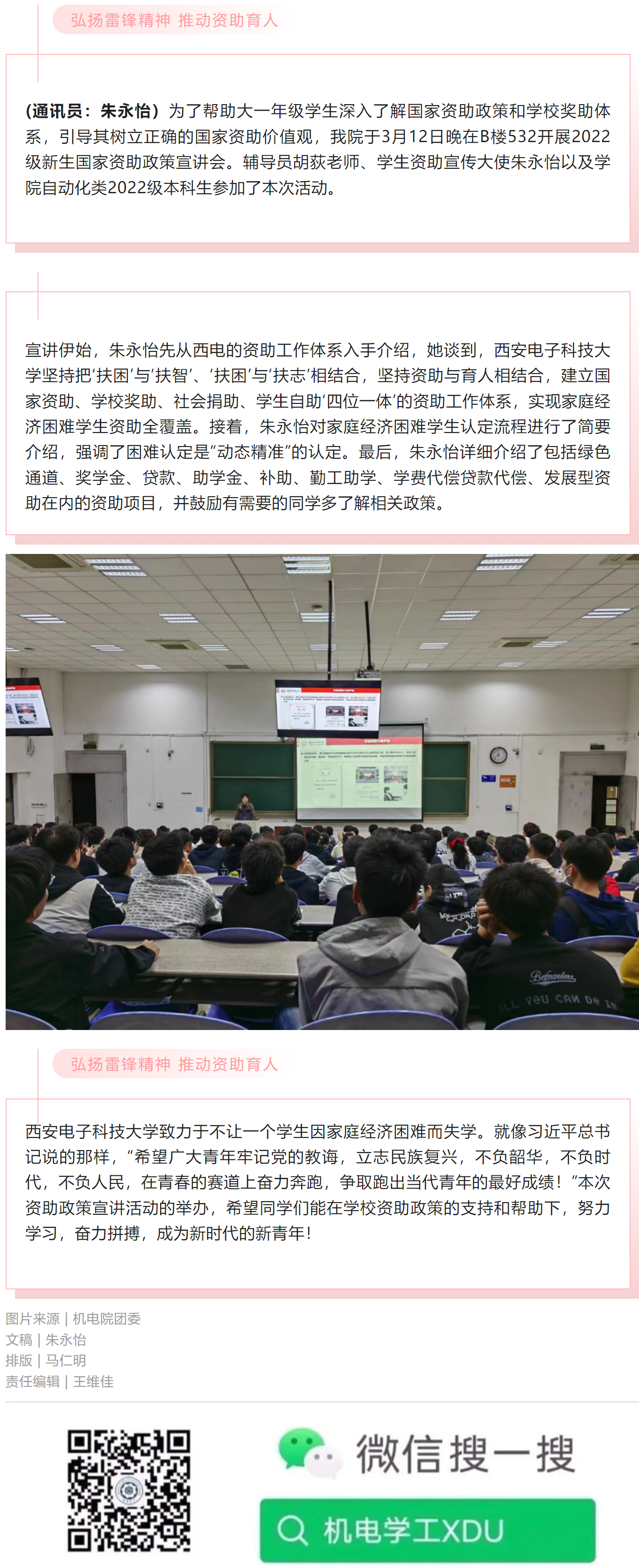 弘扬雷锋精神 推动资助育人│304永利集团唯一开展资助政策宣讲活动