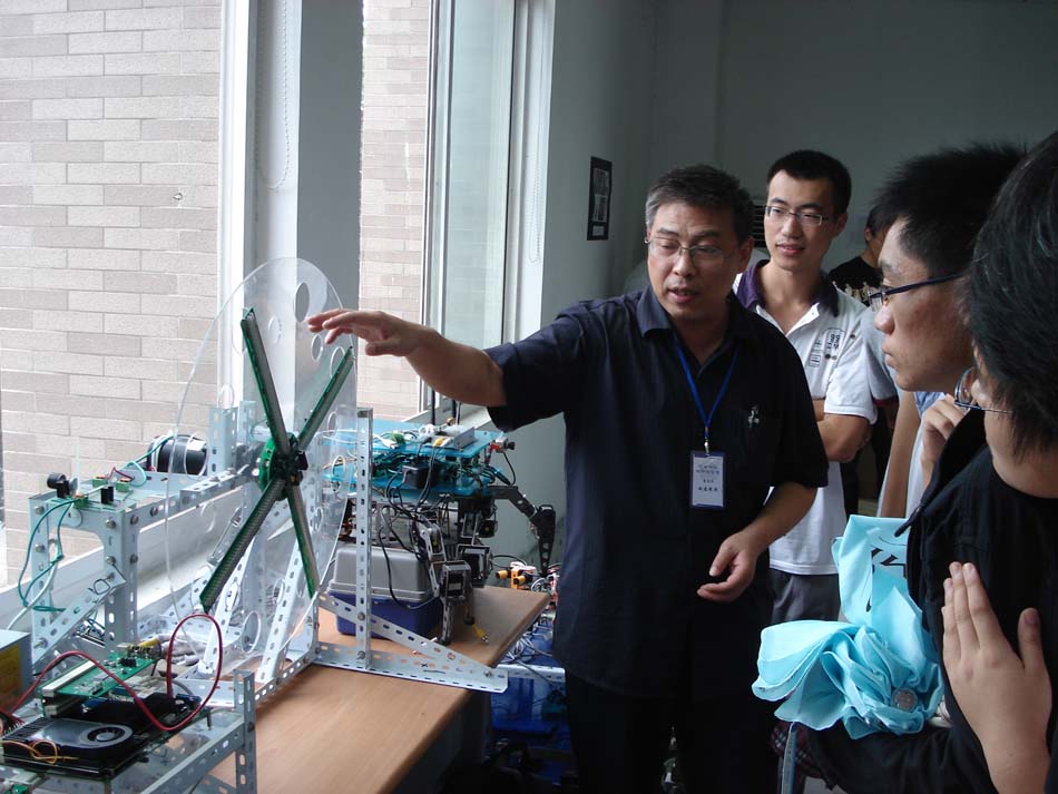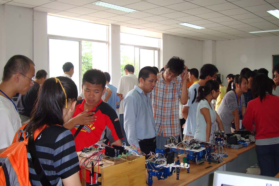 展会现场设在“公司工程训练中心智能化技术及机器人创新实验室”,参展作品有“双足步行机器人”、“四足移动机器人”等曾获“星火杯”特等奖作品和在历届“全国老员工挑战杯”、“全国老员工电子设计竞赛”、“全国老员工嵌入式竞赛”中获得国家级奖项的优秀作品。展会现场测控系主任赵建教授热情地向新生及家长讲解并回答他们的提问。现场“声控装配机械手”、“自动循迹避障智能小车车队”等项目的精彩表演深深地吸引了在场的员工及家长,精巧的作品,高深的制造技术将新生们带入了科学技术的奇妙课堂,极大的激发了新生们学习,制作的兴趣,为公司星火杯举行奠定了新一届人员基础。