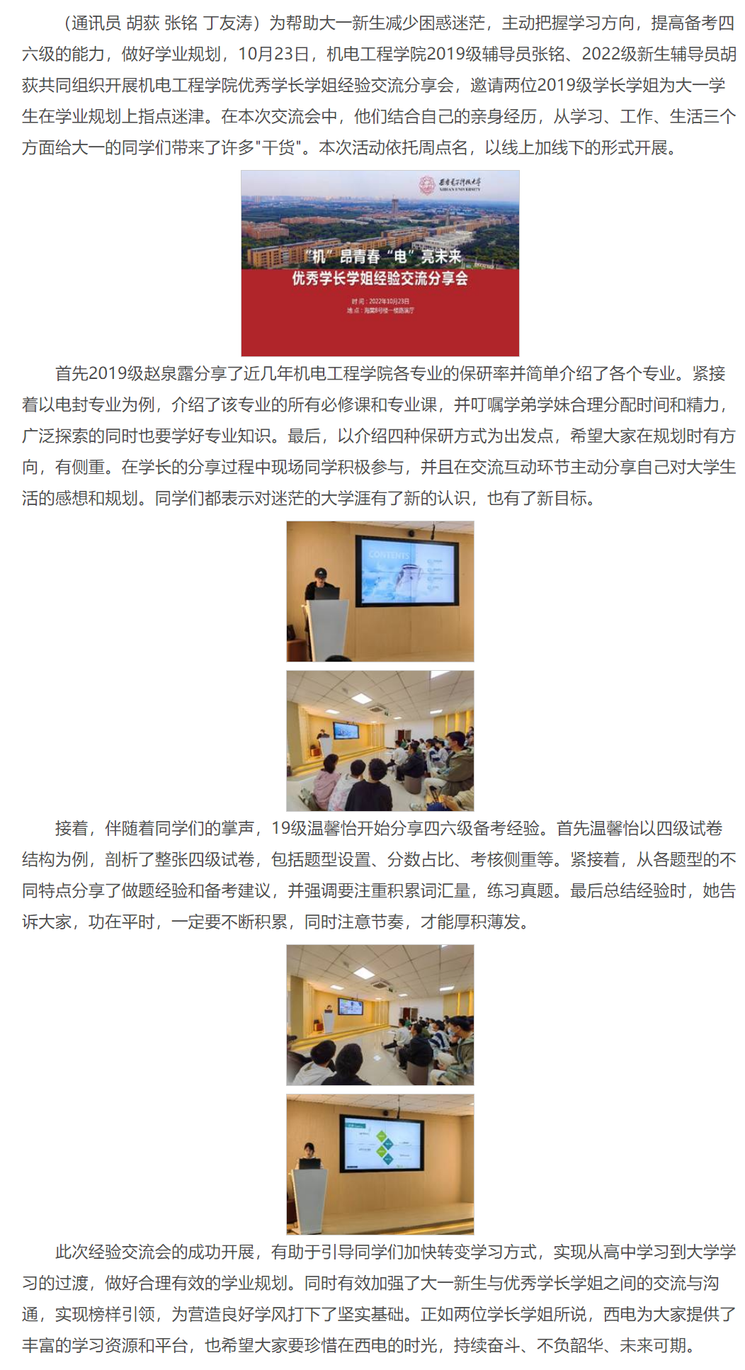 “机”昂青春,“电”亮未来|304永利集团唯一优秀学长学姐经验交流分享会