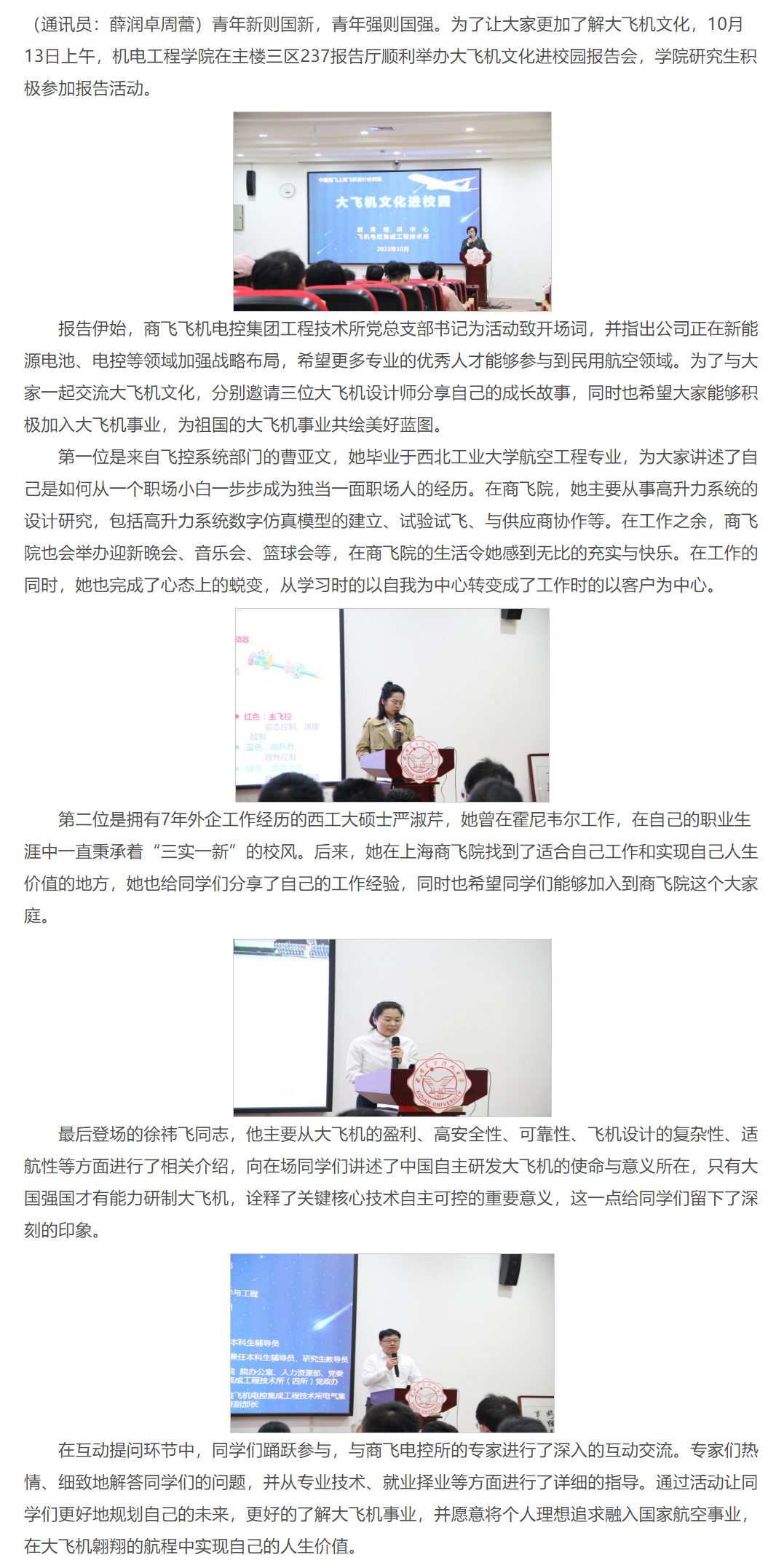 304永利集团唯一开展大飞机文化进校园