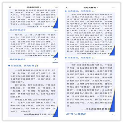 疫情防控是一场大考,全体党员同志必须听从号令,明确自身使命,主动担当。各员工党支部组织全体党员充分发挥党员先锋模范作用,重温入党誓词。积极联系班级、宿舍、实验室同学,收集员工关于线上教学的意见建议;在疫情防控期间,对有需要帮助的同学及时提供力所能及的援助,做辅导员管理员工的助手,任课教师上课的助手,为老师服务,为同学服务。研04182党支部成立了“抗疫”小分队,积极配合辅导员工作,督促班级员工严格执行疫情日报告制度,做到不瞒报、不漏报、不迟报、不错报。各项工作稳步、有序推进,做到师生心连心,校家不分离,全员携手防控抗疫,共渡难关。