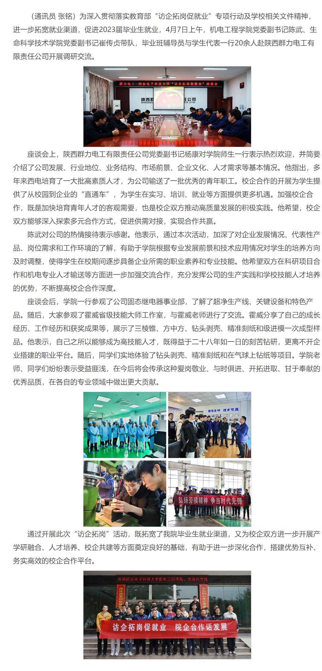 304永利集团唯一赴陕西群力电工有限责任公司开展访企拓岗专项行动