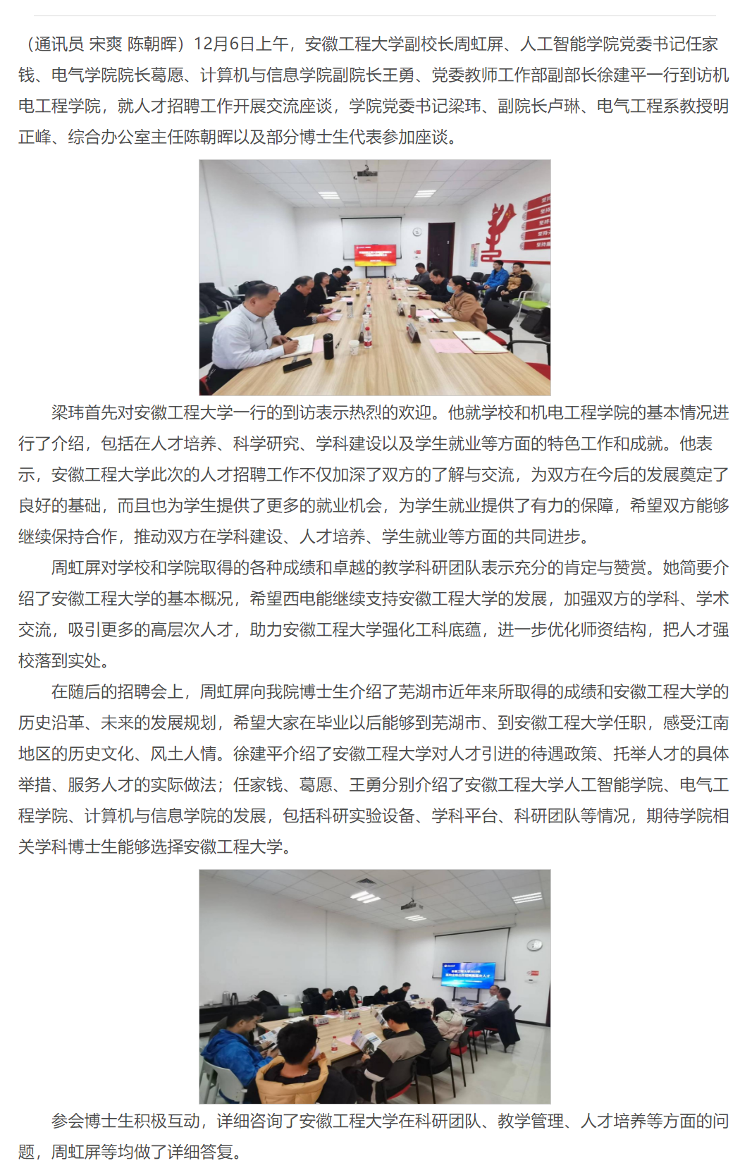 安徽工程大学一行到访304永利集团唯一进行交流座谈和人才招聘宣讲