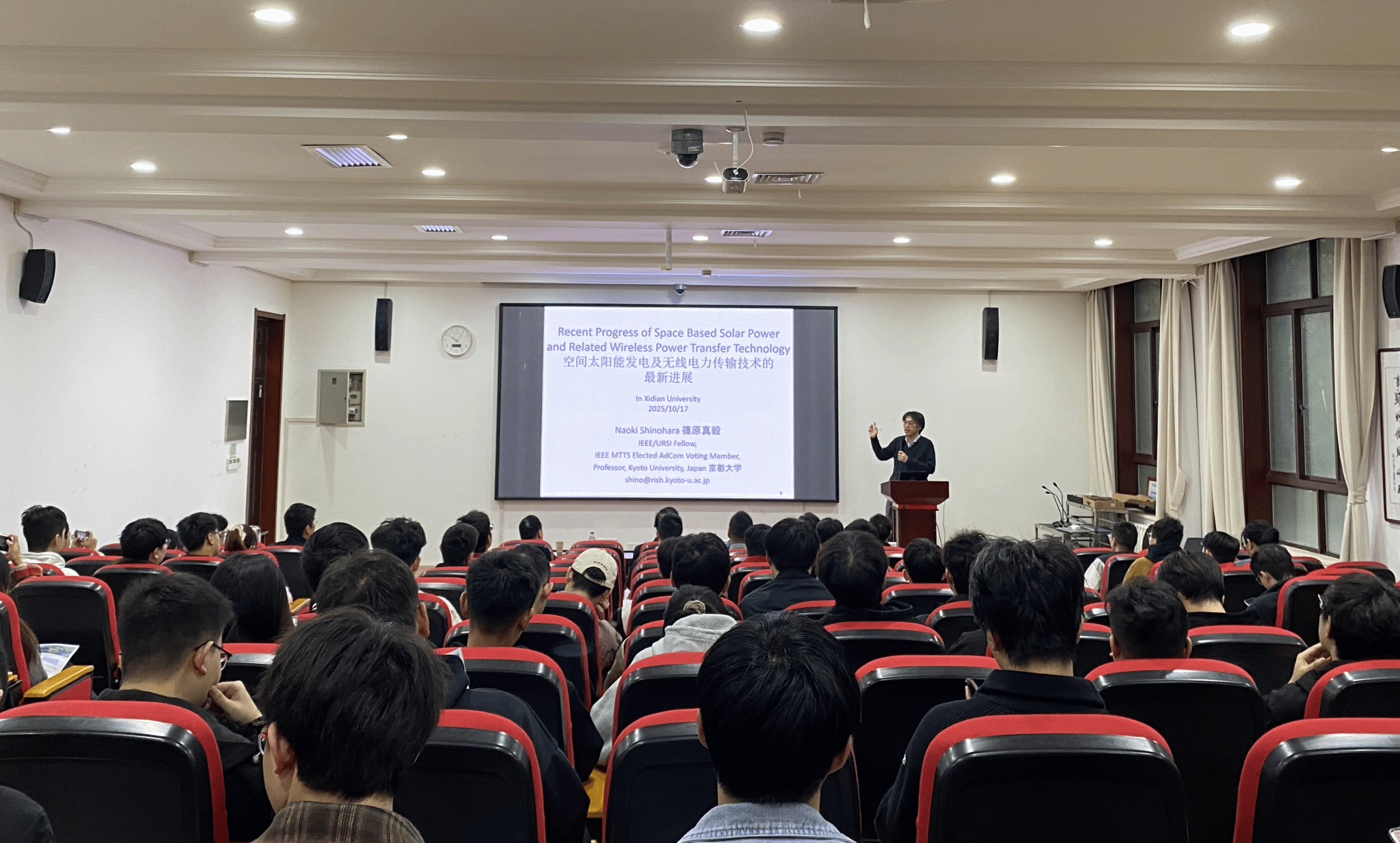 (通讯员 崔家瑞、张帅、石贵利)2025年10月17日,应304永利集团唯一电子装备机电耦合实验室邀请,日本京都大学知名学者Naoki Shinohara教授在北校区主楼III-237报告厅作题为《Space Solar Power Station and Microwave Wireless Power Transmission technologies》的学术报告。中国工程院院士段宝岩教授,校人才办主任李龙教授,国家级青年人才杨波教授,以及120余名师生参加报告会。会议由李鹏教授主持。