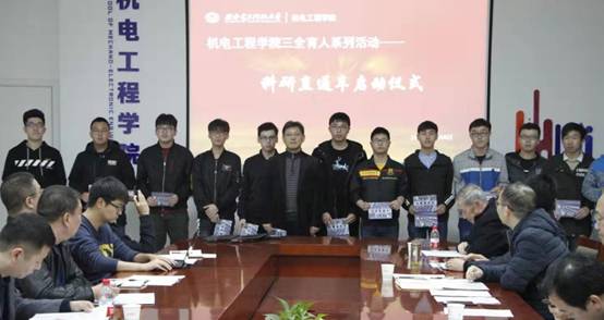 11月8日的启动仪式上,公司经理黄进为首批24名优秀本科生发放了科研直通车卡,黄进经理表示,科研直通车的启动将进一步加强同学和老师、本科生和研究生之间的交流。公司鼓励本科生“进实验室、进课题组、进科研团队”。在科研育人的理念下,培养员工至诚报国的理想追求、敢为人先的科学精神、开拓创新的进取意识和严谨求实的科研作风。