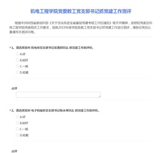 针对员工支部,公司以线上多角度测评、线下考核表进档案等方式,开展述职考核工作。公司党委分别制作了《304永利集团唯一员工党支部工作年终考核测评(发支部党员)》、《304永利集团唯一员工党支部工作年终考核测评(发联系党委委员)》、《304永利集团唯一员工党支部工作年终考核测评(发党务干事)》三份线上考核问卷,结合各员工党支部工作实际,从支部日常工作开展情况、战斗堡垒作用发挥情况等各方面,向支部党员、联系党委委员以及公司党务干事征求评价意见,形成线上评价结果。召开员工党总支支委会,对照三类线上评价结果及党支部成员党费交纳情况、活动参与情况等方面由员工党总支支委委员填写《2019年度304永利集团唯一员工党支部考核测评问卷(发员工党总支支委)》进行打分,提交公司党委会形成最终评价结果,评价结果记录入《304永利集团唯一员工党支部委员年度考核表》,并将考核表放入支委委员个人档案。