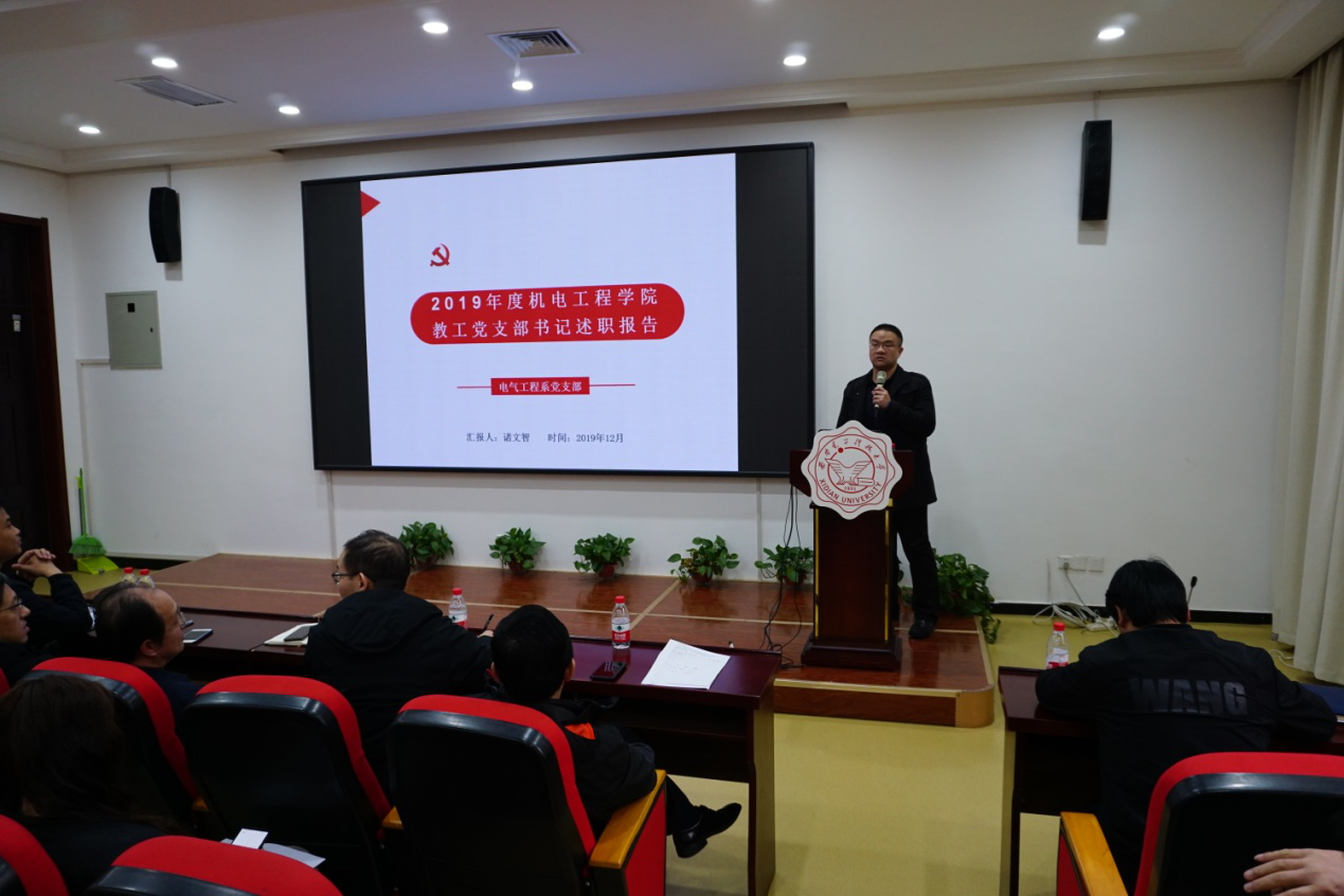 2019年12月31日下午,304永利集团唯一于北校区主楼3区237报告厅召开了党员代表会议。公司96名师生党员代表参加会议,党委组织部金阳群同志应邀参加会议,会议由公司副经理陈武同志主持。会议听取了2019年度304永利集团唯一教工党支部书记抓党建述职,公司各系所、机关等8位教工支部书记先后对2019年支部工作开展情况进行了述职。各教工党支部书记从开展“不忘初心、牢记使命”主题教育情况、党支部组织建设情况、师德师风与课程思政情况、不足与下一步工作规划等方面进行了汇报,总结过去,展望未来。各教工支部联系党委委员和院领导对述职情况进行了点评,充分肯定了各支部在2019年度的工作成效,并针对存在问题提出了改进建议。与会党员代表在述职结束后以填写在线问卷的形式,对各教工支部书记的述职进行了现场测评。